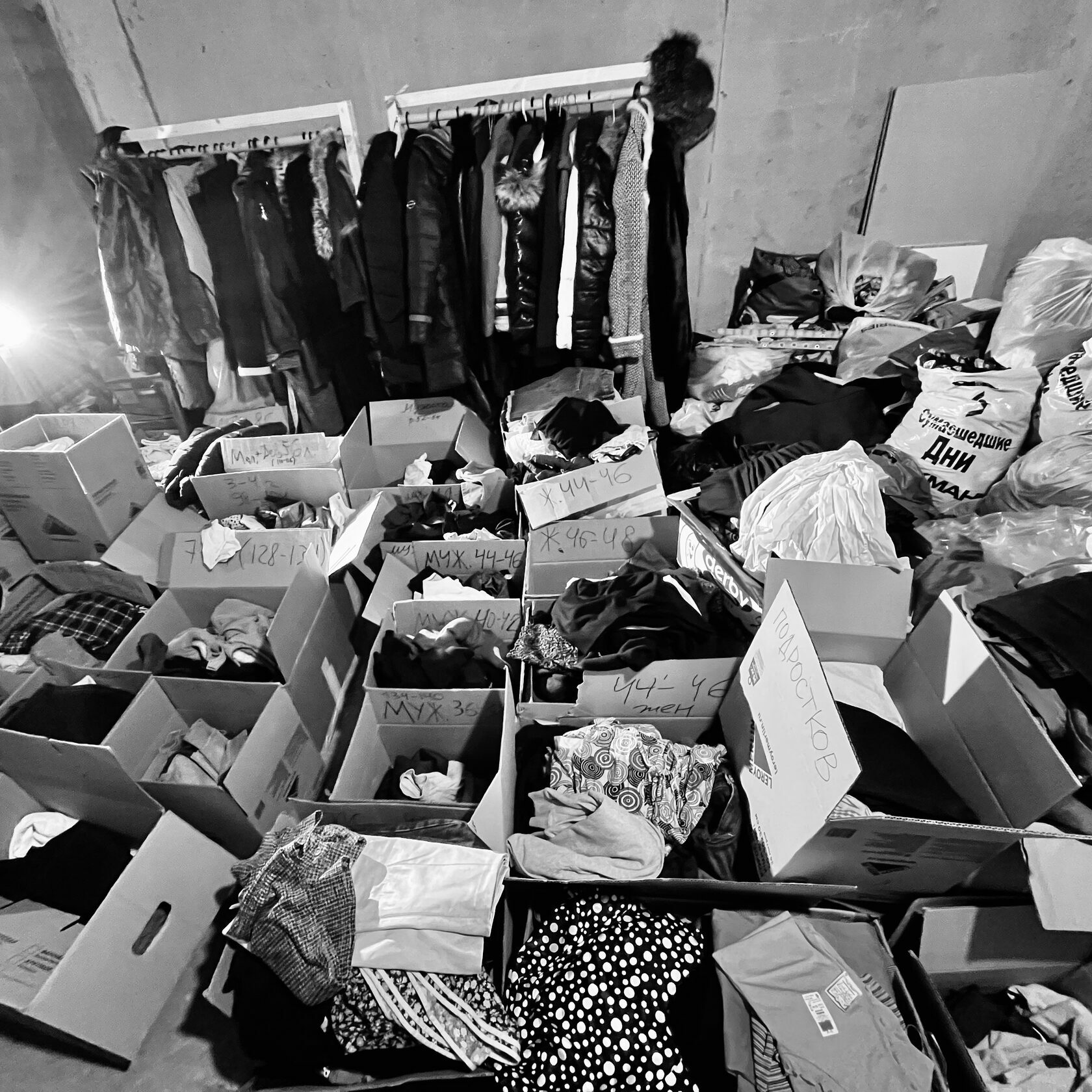В прошлое воскресенье один из наших кураторов, не задействованный в очередном выезде на поля освобожденных территорий, вместе с волонтером-помощником подготовил для вывоза половину вещей на складе.